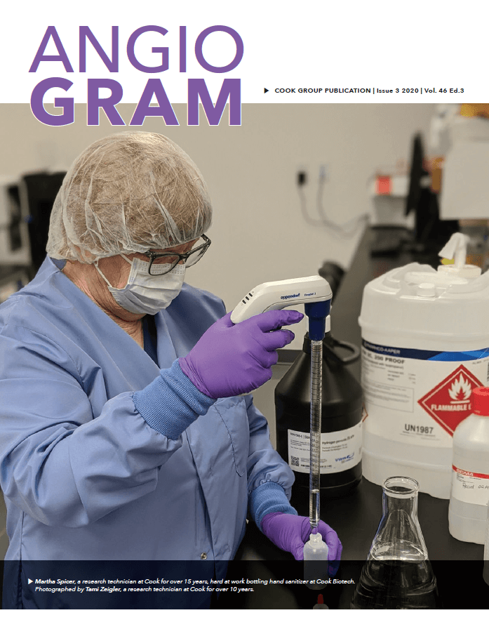 Check out this digital version of the latest edition of the Angiogram, featuring stories about what Cook people are doing during the COVID-19 pandemic. This series originally ran on the Life@Cook blog, but we have also compiled it into this special edition of the Angiogram. Print copies will be available soon!