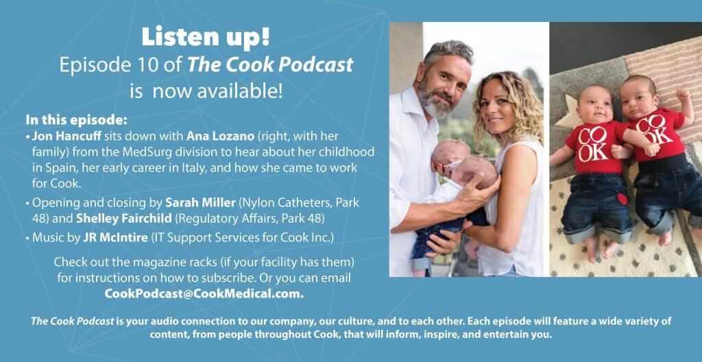 The Cook Podcast is your audio connection to our company, our culture, and to each other. Each episode will feature a wide variety of content, from people throughout Cook, that will inform, inspire, and entertain you.