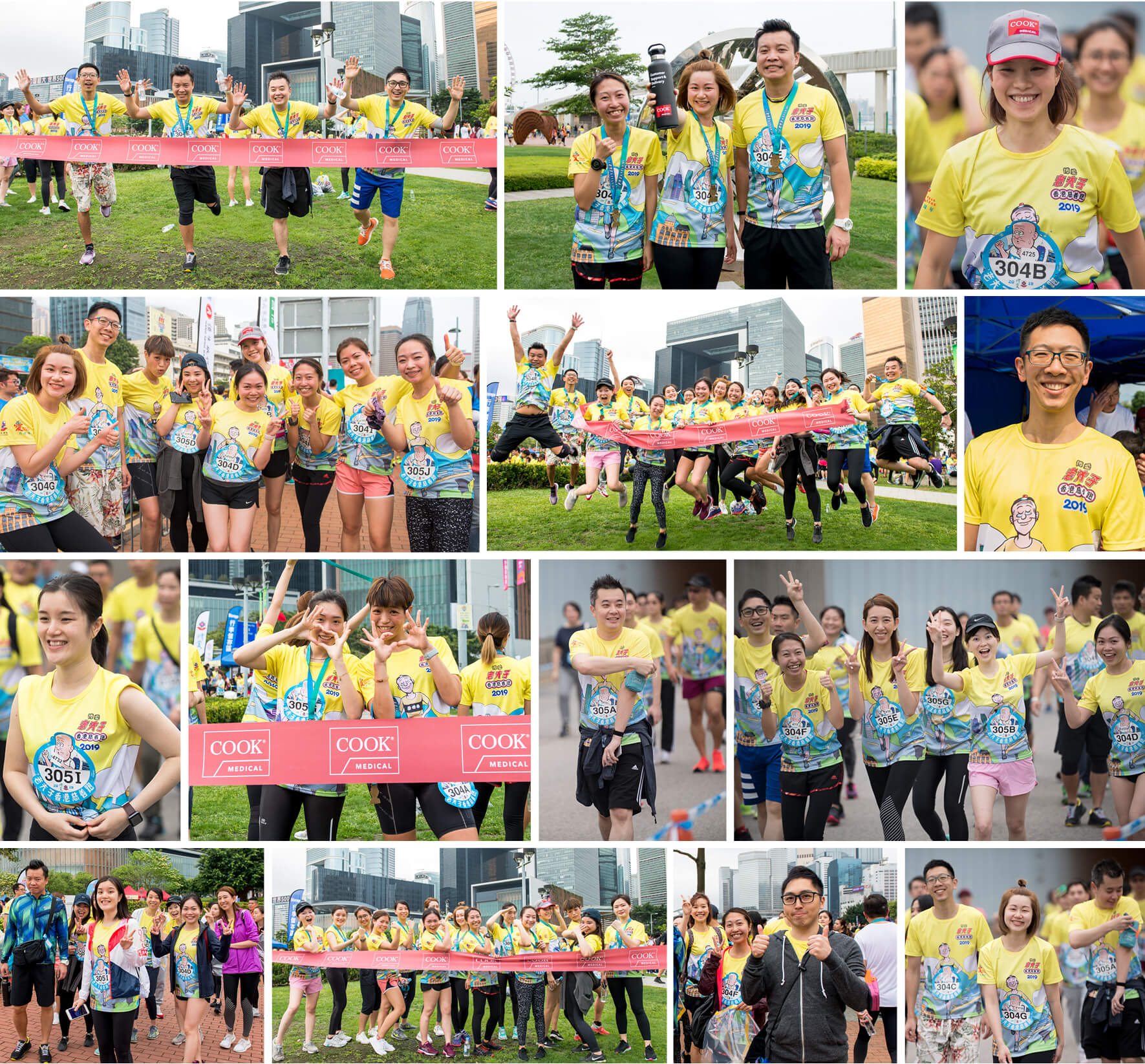 The twenty Cook runners display their medals after completing the race. The 19 Cook employee runners included, from left: Clark Tung, Paula Chong, Jennifer Wu, Wendy Kwong, Vicki Chan, Hero Ng, Jenny Tse, Vivian Chan, Swee Ng, Natalie Liang, Angel Li, Mandy Kung, Phoebe Choi, Hazel Lin, Anita Li, Kar See Lock, Lila Lin, Christina Lam, and Michael Lui.