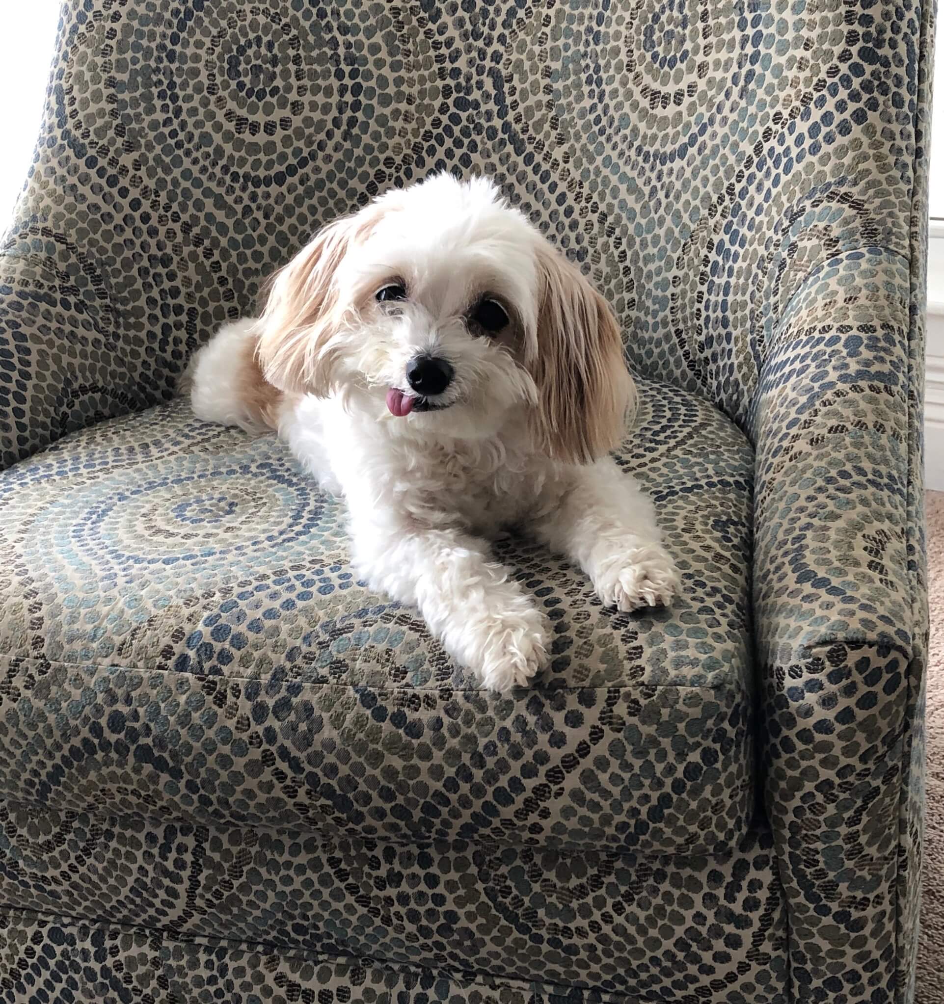 This is Annie, she is a Cavachon. She is sweet, fun, and runs our house!