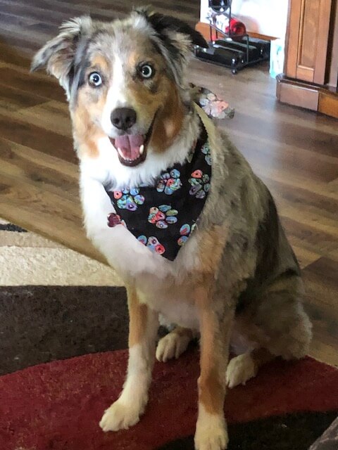 This is Bailey, a 3-year-old Australian Shepherd. She loves to play fetch/frisbee/and tug-o-war. She is very high energy and requires lots of attention. To say she is spoiled would be a huge understatement. She loves back rubs and belly rubs, and she knows how to sit, backup, shake, high-five, and will wait until told ok to give her treats. She is very intelligent, she knows words like lunch, dinner, bath and go, and she loves to react very loudly!!!