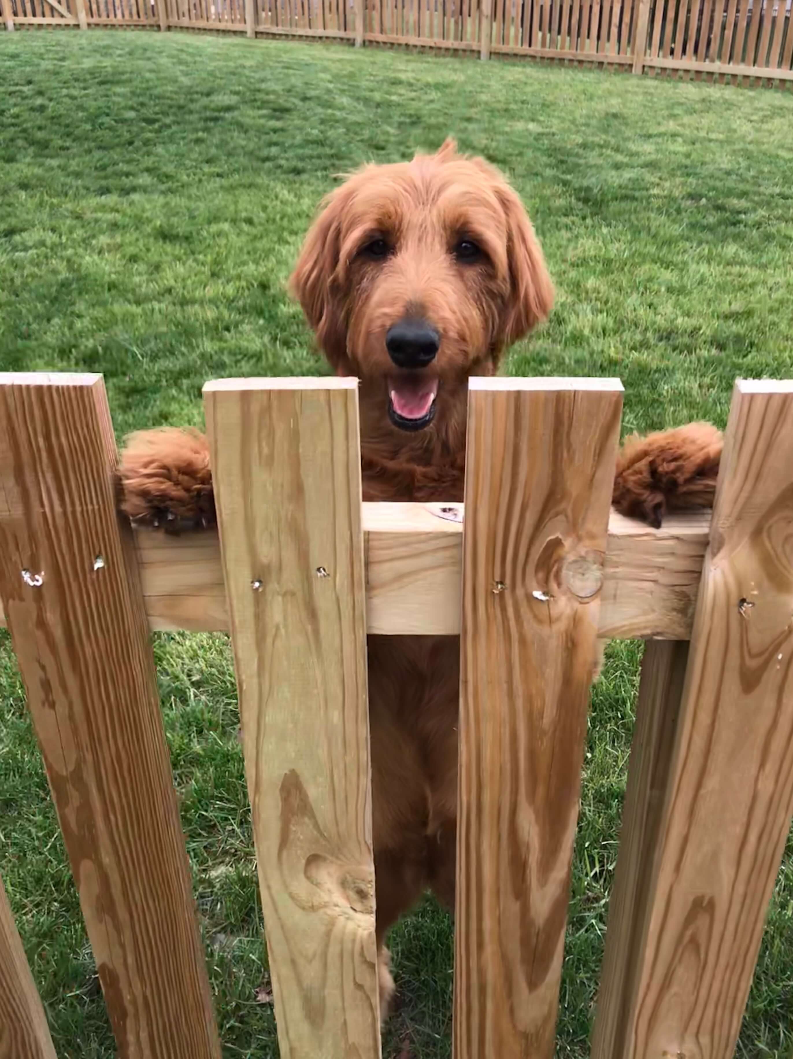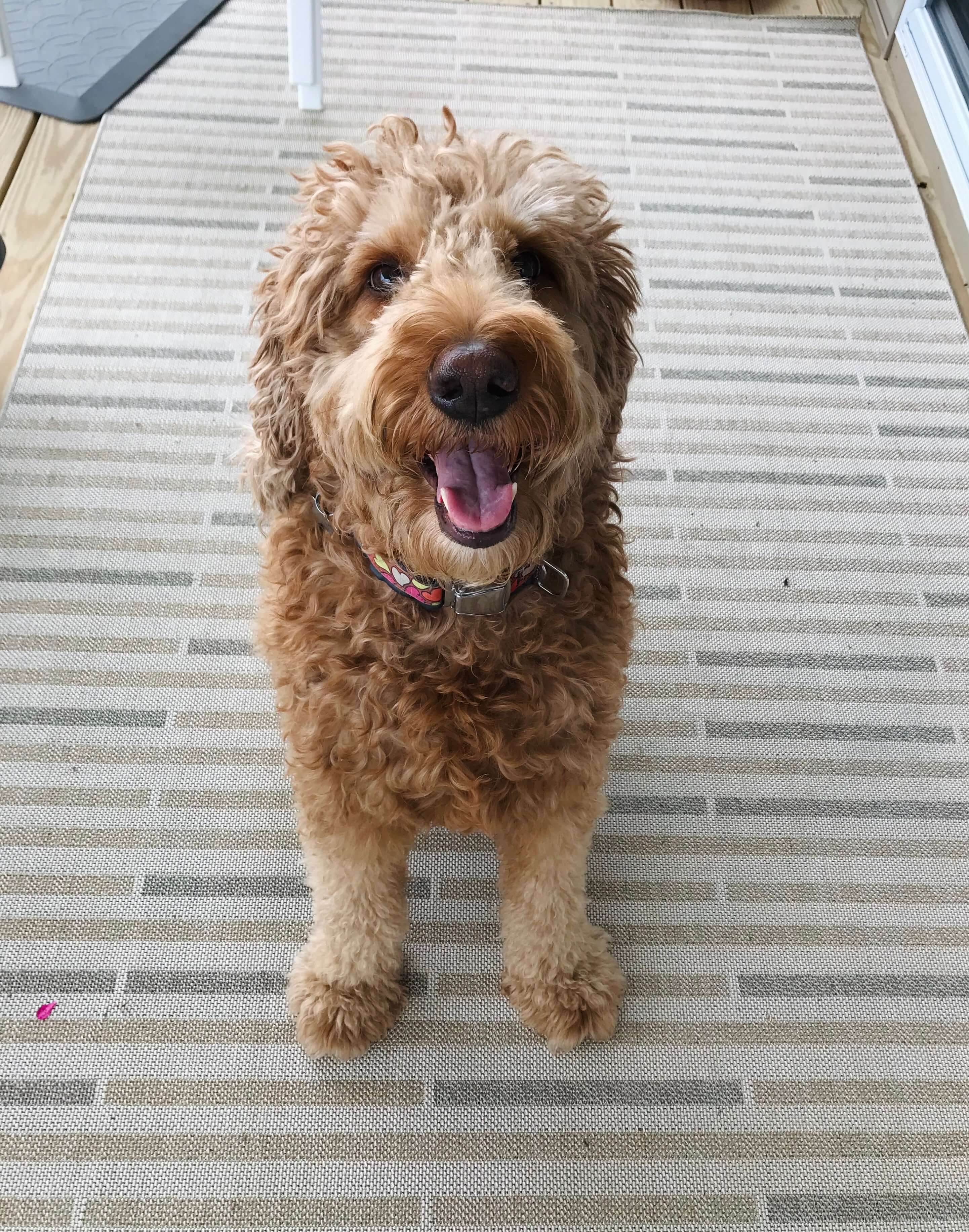 Meet Bijou Boudreaux (pronounced bē-ˌzhü), Goldendoodle daughter of Ray and Jackie Boudreaux. Bijou loves peanut butter, her Frisbee toy, and running along the fence (with tail wagging) “protecting” her yard.