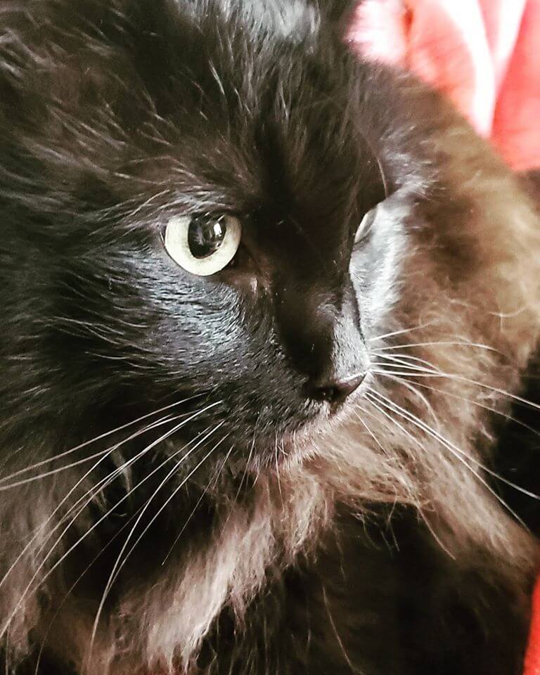 My cat’s name is Eva Kant. She is named after an Italian comics character who originated in the series “Diabolik.” She came into my life when I lost my mother, in 2008. I went to a local animal shelter and I always say that she “chose” me: among all those cats, she moved towards me and hasn’t left my side since. It was love at first meow!