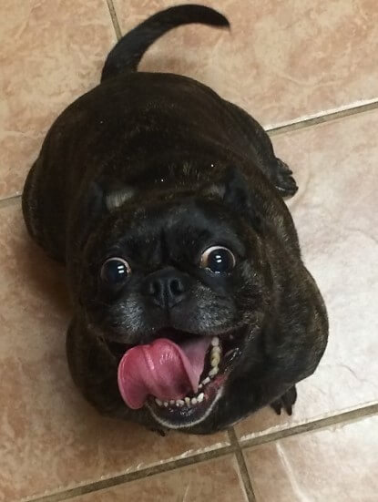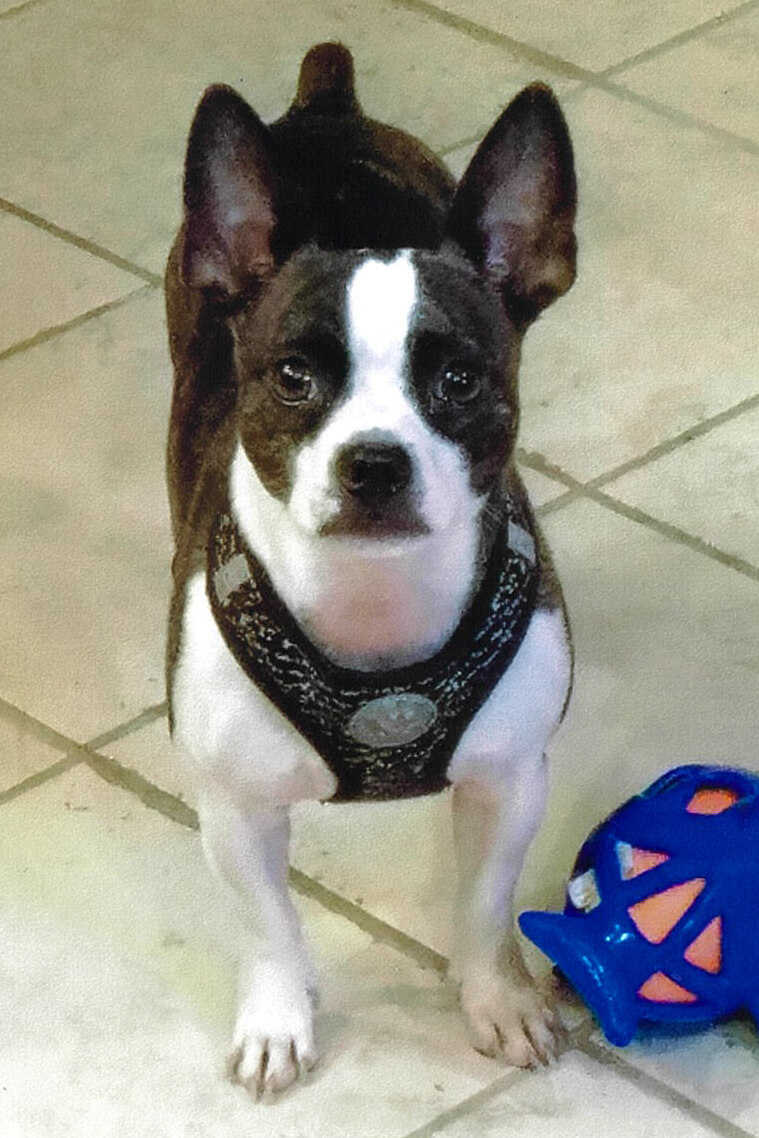 “Keep on smilin’!” has been Rosie’s motto since the pandemic started. Rosie is a “BUG,” half Boston Terrier and half Pug.