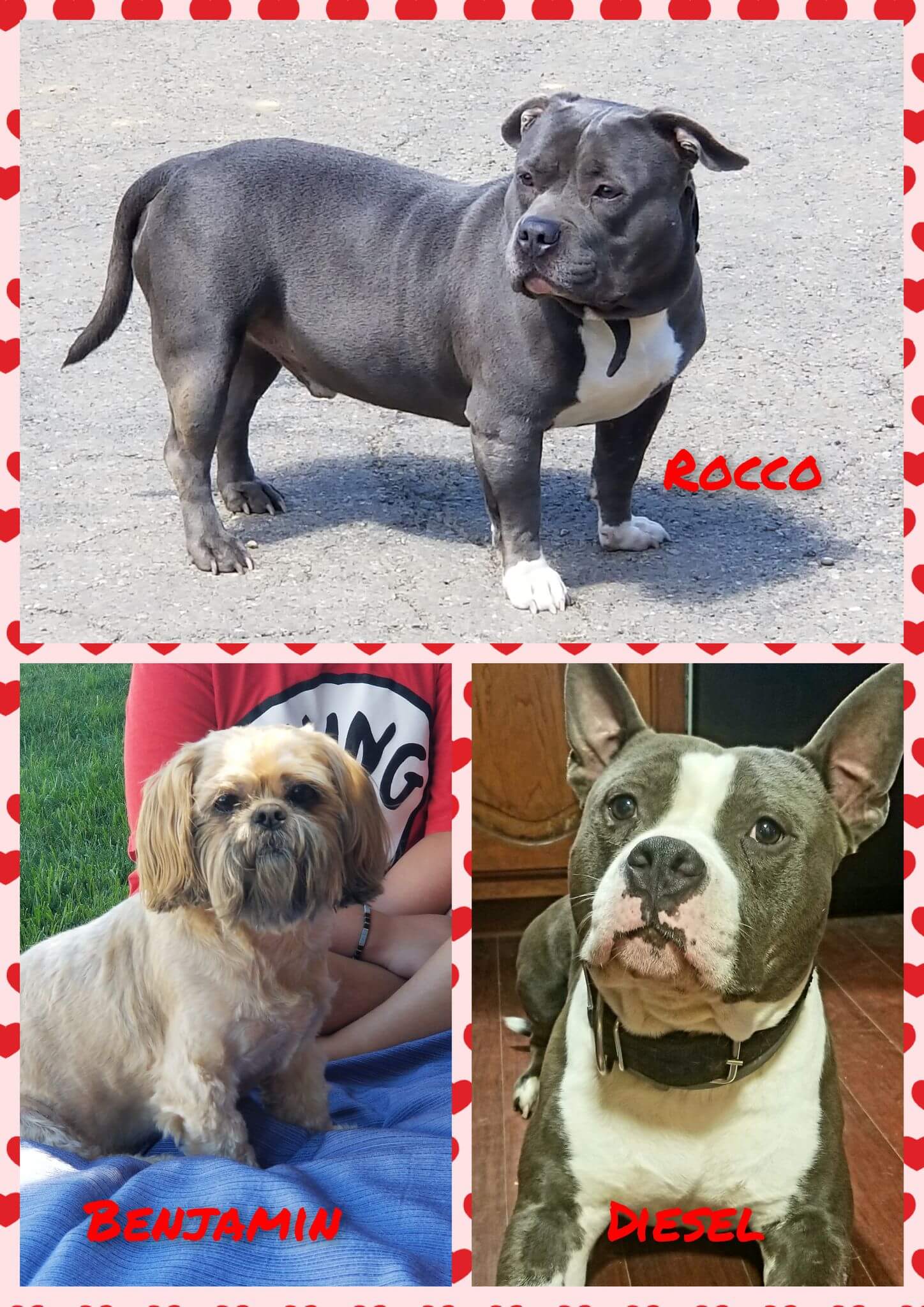 Rocco is a 5-year-old pocket American Bully who loves playing in the creek, meeting new people, going on coffee runs with his mama, and stealing treats from his brother, Diesel. This chunky house hippo's favorite things include beef bones from the local butcher, ice cubes, and pepperoni pizza.