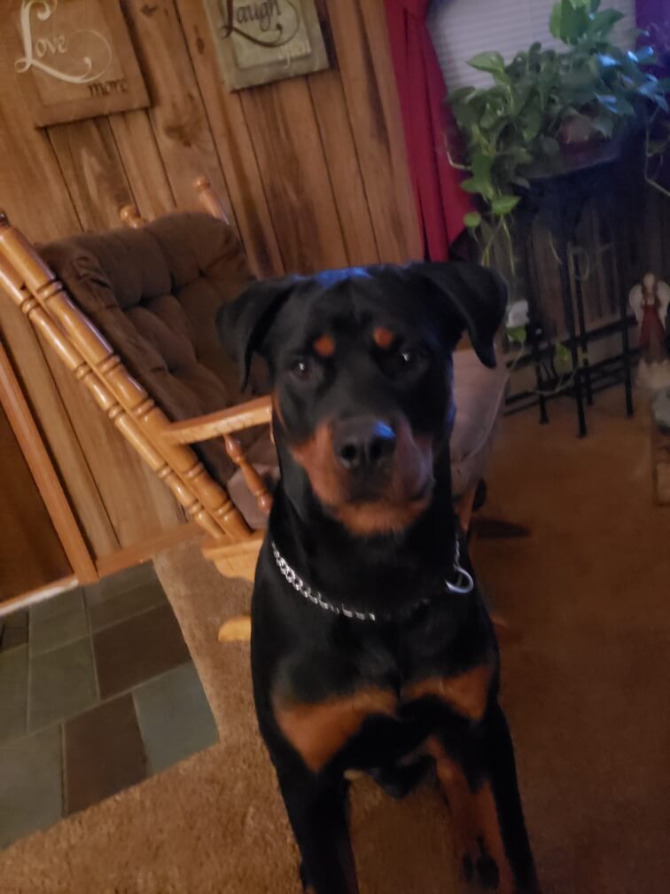 This is our pet, Big Dawg. He is completely house-broken, and my grandkids, Abe and Sol, love him!