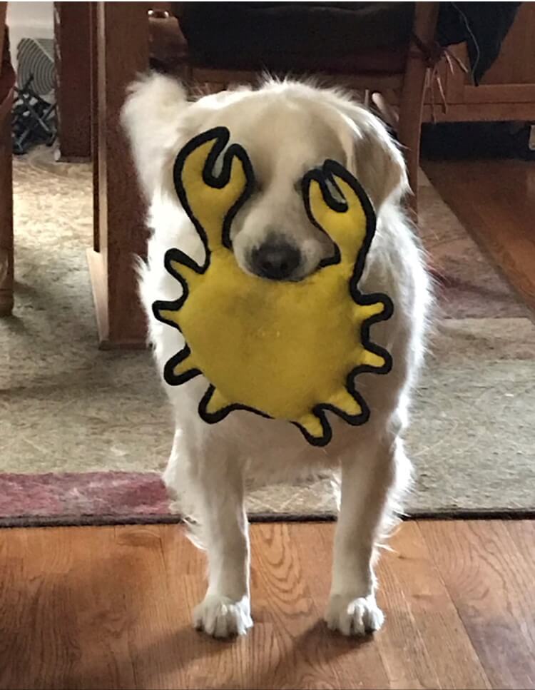 Shelly, our English Cream Golden Retriever, with her favorite toy first thing in the morning! So very happy to see us, and she made our day like she does every day! How could you ever be “crabby” when you have Shelly in your life!